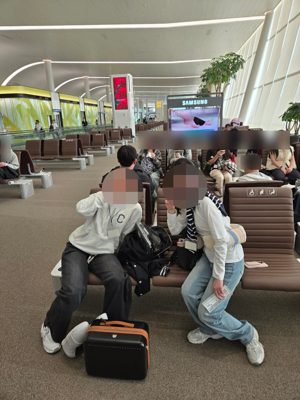 우리 아이들 출국 심사 씩씩하게 잘 받았구요, 심사 마치고 우리 모두는 게이트 앞에서 대기했는데요. 대기하면서 처음 만난 친구들끼리 서로 도란도란 이야기하는 모습이 참 보기 좋았습니다.